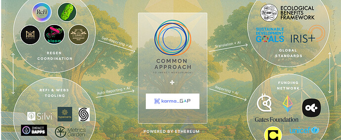 The Regen Coordination GG23 round pioneered AI ImpactQF — combining quadratic funding with AI-augmented impact evaluation using dual AI models and Common Impact Data Standards — distributing $96,000 across 50 regenerative projects.